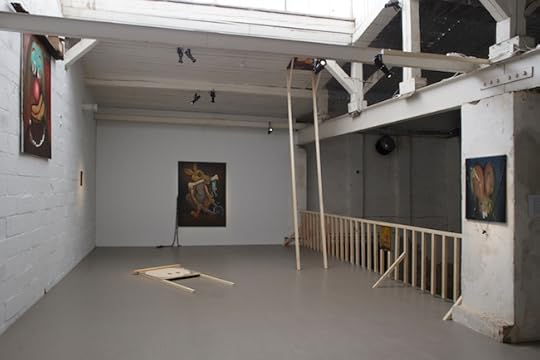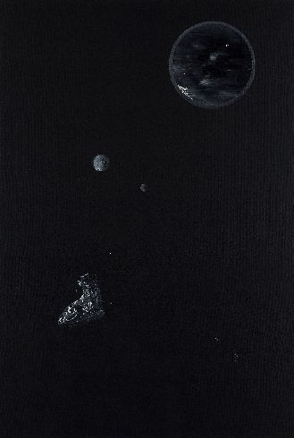 12. Ещё на Рибоке (арт-квартал SPORTA 2) были картины латвийского художника Эрикса Апаляйса (Ēriks Apaļais). О них довольно много всякого умного понаписано в каталоге (деконструкция, то-сё), но меня подкупило, что это живопись-живопись (холст-масло, как в глубокой древности) и при этом ч/б. Про летающий в леденящем космосе одинокий ботиночек, одинокую книжечку (в леденящем космосе же) и прочее одинокое в нём.