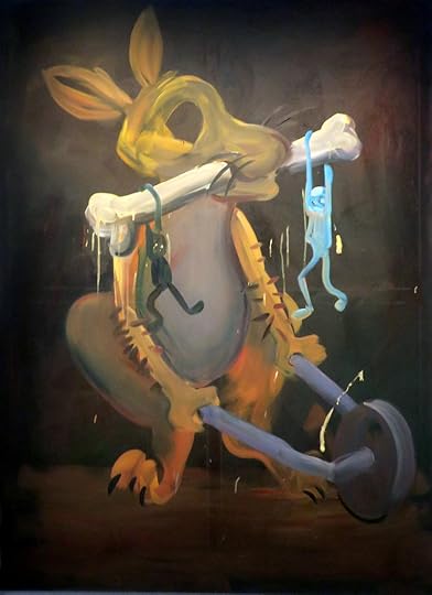 11. Для начала расскажу про живопись, выставленную в Zuzeum. Это прям крутота, возвращение золотых (для актуального искусства) европейских пятидесятых и наших подпольных восьмидесятых эпохи прокисшего сысысэра. Болгарский художник Валё Ченков (Valio Tchenkov, Валя Щенков, как мы сперва прочитали) – отныне мой кумир, услада сердца, всё что в таких случаях положено говорить. Очень, очень крутой. Его проект называется «Private Zoo on Stage» и выглядит примерно так: