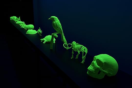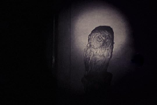 15. Например, там есть лабиринт тёмных комнат, куда следует идти с фонариком (фонарики – красные и синие, на выбор – можно взять у входа в лабиринт). Фонарики светят не особо ярко, и их противоестественные лучи выхватывают из темноты странное. То мёртвого бэмби, завёрнутого в целлофан, что твоя лора палмер, то сову, которая не то, чем кажется, хоть и чучело... вроде бы. Наверное, всё-таки оно. И ещё всякие шкафы, предметы, чучела, скелеты, всё вот это вот.