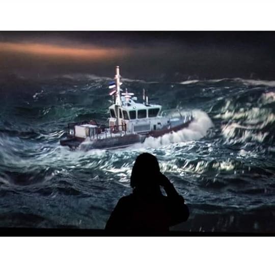 35. Меня этот шторм совершенно очаровал, а опытная друг Р. сказала, что видео уж больно топорно сделано. Теперь, почитав статьи, я знаю, что она сразу просекла суть: видео нарочно сделано топорно, потому что работа на самом деле не про шторм, а про недостоверность информации в современном мире, про невыносимую лёгкость создания фейков. Всё-таки иногда я - простодушный зритель, не считываю авторские послания. Вот и тут мне просто офигенно понравился шторм («оооо, история всей моей жизни, я же там на палубе с кофе в картонном стаканчике сижу»).