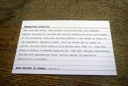37. Это прям всё как мы любим: гигантская библиотечная картотека, на каждой карточке – название и описание животного, вымершего по вине человека. Начиная читать карточки, сразу обращаешь внимание, что животные ещё не вымерли, а вымрут когда-нибудь в будущем (на карточках указаны даты окончательного исчезновения вида). Потом понимаешь, что животные вымышленные, таких нет в природе, и не может быть. И охреневаешь от зависти к художникам, которые долгими зимними вечерами сочиняли эту божественную чушь, весь миллион несуществующих вымерших тварей. Каждый хотел бы так! Ну а потом выясняешь, что вымерших животных не придумали художники, а сгенерил созданный ими искусственный интеллект, которого перед работой хорошенько покормили разнообразными справочниками и энциклопедиями.