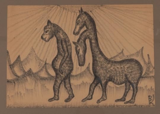 Буквально пару дней назад вспомнили в комментариях эту художницу и отыскали среди её фантастических райских тварей одну, похожую на кота. У меня до сих пор нет уверенности, что это именно котик. Но пусть считается, пусть.