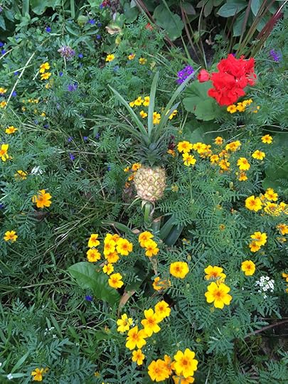 В пятницу же (то есть, в минувшем уже сегодня) мы решили залить это горькое горюшко методом бытового пьянства на пляже, настолько удалённом от всего сразу, что можно сказать, вообще нигде, но телефоны в этом нигде всё равно работают, поэтому в разгар бытового пьянства мне пришло сообщение от друга Р., которая обнаружила в одном из палисадников сурового балтийского северного города Вильнюса суровый балтийский северный ананас. Он вырос там на грядке, в смысле, на клумбе. Это выглядит так (спасибо другу Р. за картинку):