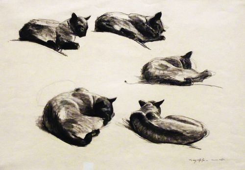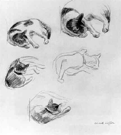 Эдварда Хоппера (Edward Hopper) многие знают, как минимум, его «Полуночников»; котиков на картинах Хоппера мне найти не удалось, зато он на них учился рисовать, натурально тренировался на кошках: