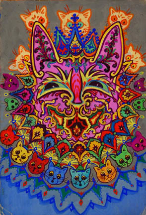 А вот по-английски, с картинками же (иллюстрации пересекаются только отчасти, поэтому лучше обе статьи смотреть, а ещё лучше - забить в поиск Louis Wain, открыть картинки и наслаждаться многообразием котиков - мимимишных, фрактальных и просто ебанутых, всё как мы любим, карочи.