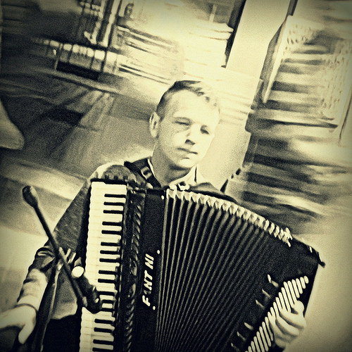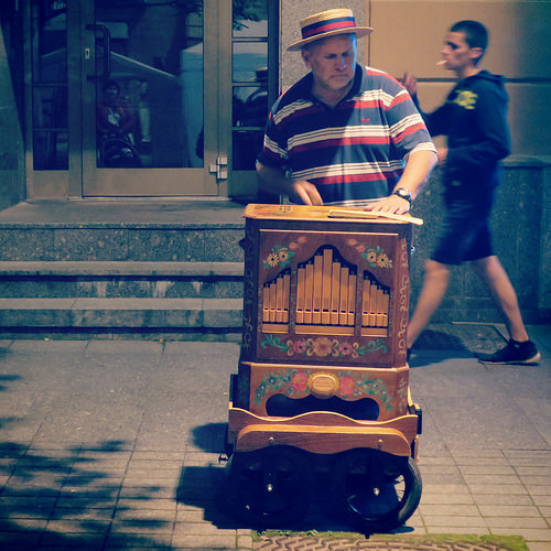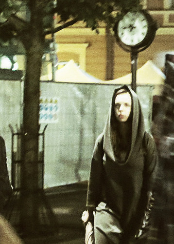 Однако как только заканчивается работа и начинается так называемая "жизнь", нет существа, нелепей меня с моей эффективностью. Мне безумно трудно всё, даже, к примеру, гулять, потому что внутренний хищник не понимает, за каким хреном мы сейчас потащимся на другой край города, где нас ничего полезного не ждёт. Приходится постоянно изобретать для него разные дела, похожие на охоту или игру. Ну типа купить какой-то специальный хлеб из какой-то специальной отдалённой пекарни. Или сфотографировать какой-то двор. Камера, собственно, настоящее спасение, вот уже лет десять намерение сфотографировать что-то является для меня достаточным аргументом выйти на улицу (а мне, как наверное всякому городскому человеку жизненно необходимо проходить несколько километров каждый день). Последние пару лет позиция камеры несколько пошатнулась, но тут на выручку пришёл плеер, у нас с ним игра - во-первых, никогда не знаешь, когда какая музыка выскочит, а во-вторых, видеть окружающую жизнь как музыкальный клип - моё любимое развлечение ещё с тех пор, когда никаких клипов вообще не было; точнее, уже понемножку появлялись, но мы их не видели. В ту пору посмотреть, как прохожие начинают двигаться под музыку, которой, по идее, не слышат, удавалось только из окна такси, если у таксиста играло радио.