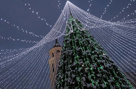 По крайней мере, так говорят, я-то не в теме. Но ярмарка на Кафедральной площади заработала, и мы до неё дошли. После прошлогодней йолки-домика с окнами и балконами, идеальной и совершенной в своём роде, уже ничего конечно не прокатит, кроме продуманного повтора (с бельём на верёвках, непременно с бельём). Но в этом году сделали совершенно иначе, и как ни странно, получилось очень хорошо. И ярмарка в этом году уже почти настоящая, почти большая, почти как у взрослых. Это же сколько лет мне пришлось её хотеть, чтобы всё получилось? По-моему, двенадцать. Я совсем фиговый колдун. Зато упорный, старательный и упрямый.