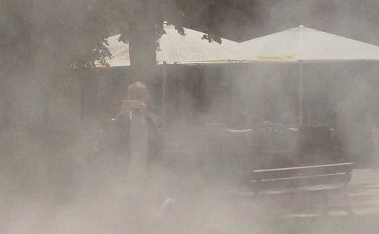 В конце концов мы с силуэтом практически столкнулись в этом белом дыму - не лбами, но к тому шло. Конечно, он тоже оказался человеком с камерой. И уставился на камеру в моих руках. А я - на его камеру, постепенно осознавая, что с его точки зрения, я - силуэт, который отлично смотрится в этом белом дыму и так удачно приближается, щёлк, щёлк. Он в это время осознавал ровно то же самое. В какой-то момент мы переглянулись, заржали и разошлись - два психа, два маньяка, два совершенно одинаковых (на протяжении одной минуты нашей жизни) существа, одержимых бессмысленной красотой белого дыма, который лично у меня ни хрена не получился, все фотки пришлось выкинуть кроме двух, первая вроде ничего, а вторая - просто на память о счастливой встрече с двойником, в смысле, таким же прекрасным придурком, как я. Щёлк.