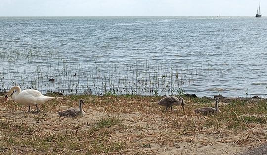 Катались нынче по озеру Гальве с душераздирающими воплями и стонами. Вопли и стоны издавал водный велосипед ярко-красного цвета, видимо в него вселились души всех неудачливых рыбаков Тракайского района, или всех пойманных рыб, или всех ненакормленных булками птиц. Но чьими бы эти души не были, орали они знатно, и правильно делали, потому что просто с наслаждением крутить педали на солнцепёке при температуре +31 в тени - фигня, любой дурак может. А вот с душераздирающими воплями - только мы.