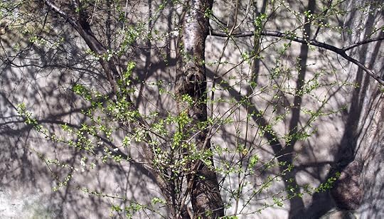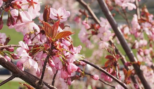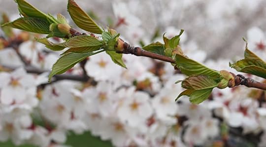 А сакуры, напротив, облетели. Яблони вот-вот зацветут. Дальние холмы понемногу утрачивают прозрачность, до летних им ещё далеко, но зелёный цвет уже выглядит вполне убедительно.