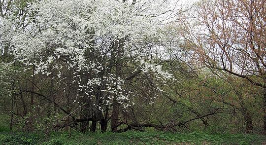 на окружающих дом холмах обнаружены заросли буйно цветущей черёмухи, а по дороге с холмов домой - кусты форзиции с ярко выраженным и даже сильным (для форзиции) запахом.
