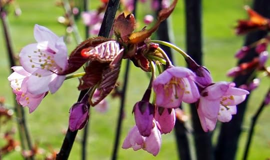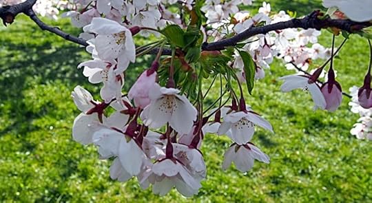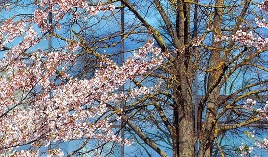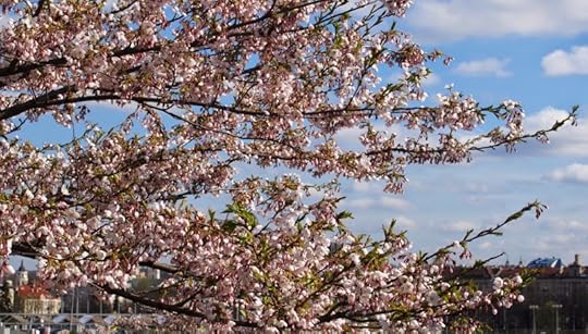 На Антокольскё, возле кафе Rene, где ещё на прошлой неделе выставили на улицу столы, зацвела вишня. То есть вот натурально, совсем-совсем зацвела, белая пена, все дела. Остальные фруктовые деревья ещё даже думать в эту сторону не начинали, а она - уже.