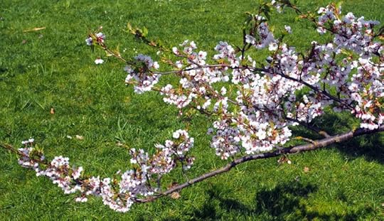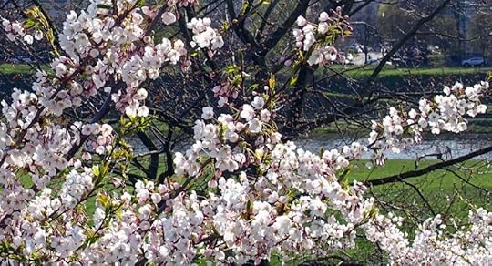 Но пока могу думать и говорить только о вишнях, которые понемногу начинают цвести, и одна на берегу Вильняле сегодня в половине третьего дня была ещё прозрачно зелена, а к шести уже побелела, только о ветре, который совершенно тронулся умом, сказывся, как говорила бабушка одной моей одноклассницы, раскачивал фонарные столбы и принёс нам в город несколько стай немецких туристов, в том числе, в шортах, в розовых, в том числе, смеётся надо мной, засранец, люблю его очень, сил моих нет.