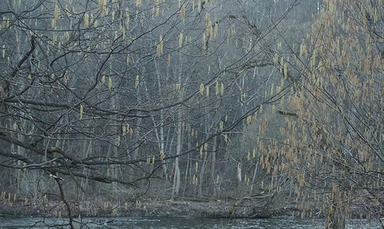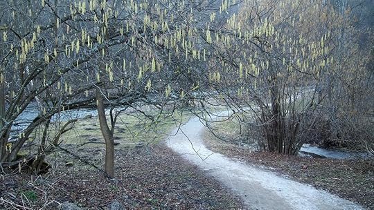 Ещё в Бельмонтасе маленькая Вильняле грохочет водопадами почти как взрослая, из ресторана вынесли на улицу столы, качающийся мост качается, как летом, цветут ольхи (множественное число от "ольха" как вообще будет?!) и храбрый весенний цветок селезёночник, а весь остальной мир изрыт кротами-мутантами. Вы бы видели те кротовины! Происхождение лунных кратеров внезапно прояснено.