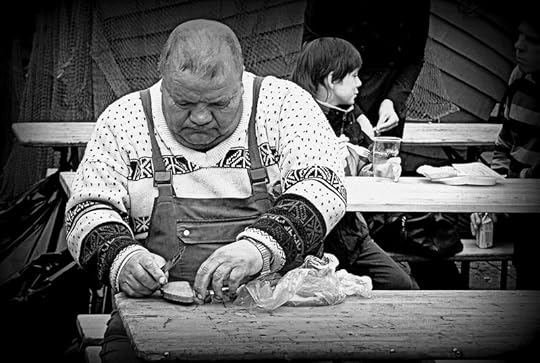 - По ярмарке той ходила Смерть, очень бледное, скуластое существо неопределённого пола с совершенно круглыми впалыми глазами. В одной руке у Смерти была новенькая коса, явно купленная тут же, на ярмарке, в другой - пакет со сливами. На голове Смерти красовалась ярко-салатная бейсболка козырьком назад.