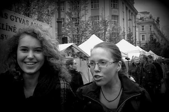 - Ещё у меня в ленте пишут, что вчера по центру Вильнюса ходили светящиеся великаны с волшебными палочками и прикасались светом ко всему вокруг. Это потому, что у нас теперь город колдунов. Всё-таки я его очень хорошо переписываю :)