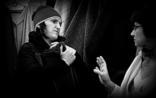 Человек продаёт самодельные фигурки рыцарей и солдат разных эпох. Продавец чрезвычайно увлечён своим делом и глубоко погружён в тему, а потому читает подробные лекции всем потенциальным покупателям. Ему явно важней рассказать, чем продать.