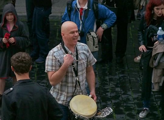 А лысый человек в клетчатой рубашке - мой кумир и (по моим ощущениям) главный шаман Драмтугезыра, уже не первый год. Не удивилюсь, если он самозарождается из стихий специально для этого мероприятия, а потом снова рассыпается на ветры, звезды и дожди. Но может и настоящий, кто его разберет. Кто подскажет мне, как его зовут, и где еще его можно слушать, тот будет молодец.