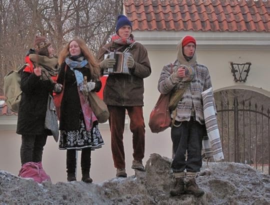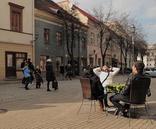 В "Кофеине" на Вильняус два зеленых дракона с торчащими из-под теплых курток хвостами покупали кофе, а потом долго пили его, сидя снаружи, на подоконнике. Подоконники эти в холодную погоду обычно занимают только курильщики, драконы же не курили. Вероятно, рассудили, что такую красоту грех в четырех стенах запирать.