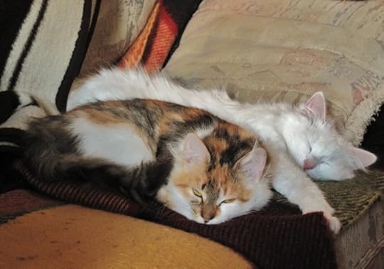 Но если подстеречь ее рядом со старшей кошкой, которая, напротив, звезда и модель, можно добиться более-менее сносного результата:
