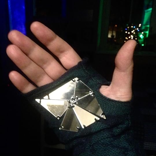 На левой руке чуть иначе, но неважно, главное, там тоже теперь зеркала. Очень удобная штука получилась, особенно солнечных зайчиков круто пускать. Но обнаружился и дополнительный бонус: если расположить ладони в перчатках одну напротив другой, так, чтобы зеркала отражались друг в друге, образовывая понятно какой коридор, из этого зеркального коридора начинает вырабатываться бесконечность. И поступает в организм, причём гуманно малыми дозами, такими, чтобы организм не порвался.