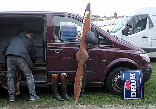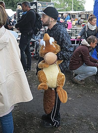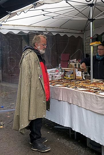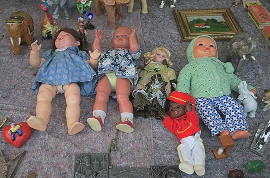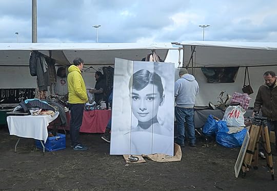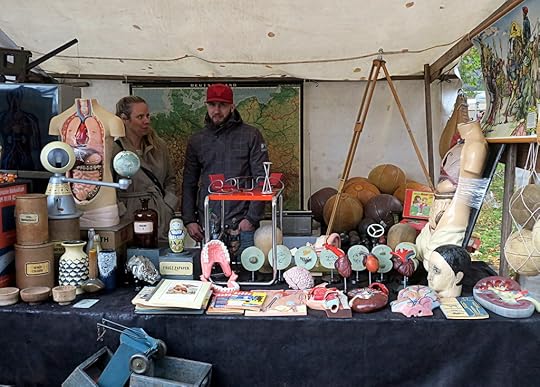 И главное, так незаметно материализуется она. Сперва кажется, всего несколько человек торгуют какой-то странной ебаниной типа противогазов и значков, потом видишь чуть поодаль киоск с сосисками (ностальгические сосиски! расщедрился наконец-то Берлин!) идёшь к нему - и то ли, просто меняется ракурс, то ли дело в волшебной сосиске, кто откусит, того и царствие небесное, в смысле, щедрый межгалактический ад, но твоему взору вдруг открывается почти бесконечное пространство старого ипподрома, заполненное адовым барахлом, добрая половина которого вряд ли может понадобиться честному гуманоиду (вторая тоже не может, - подсказывает мне здравый смысл, но теоретически, всё-таки может, некоторые люди любят адово барахло).