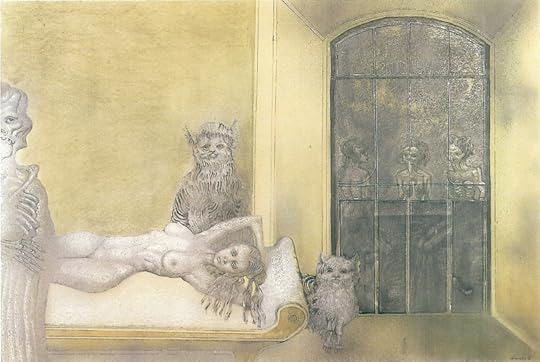 Вчера у нас была ночь открытых галерей - ну как ночь, вечер на самом деле. До 23-х работали они. А галерея, которая в Доме Учителя, и вовсе до 22-х. Мы пришли под конец (легко ли - до 10 вечера успеть?!) и уходили последними, нам даже специальная домучительская тётенька ключом открывала дверь, потому что в галерее мы обнаружили картинки крутейшей художницы Моники Раджюнайте (Monika Radžiūnaitė), и от них натурально невозможно было уйти.