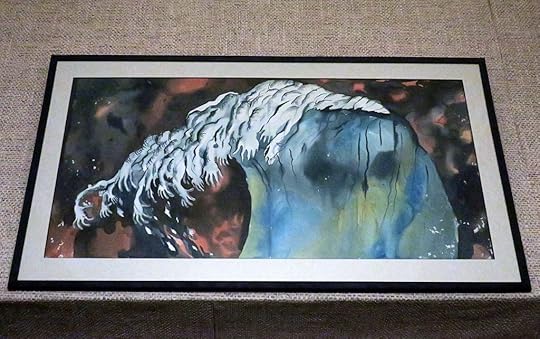 Что касается второй картинки, которую мастер Ромас задразнил Хокусаем, кота туда приспособить не получилось, она под потолком, даже я туда только с верхней ступеньки стремянки дотягиваюсь, да и то исключительно в изменённом состоянии сознания под названием "оп-па, развесочка!" - это было вотпрямвчера, и я пока этот подвиг не хочу повторять. Поэтому, дорогой Ананас, ваша картинка в рамке, но без кота под катом.