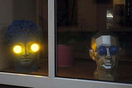 Сегодня удар был нанесён на улице Одминю, там какая-то арт-галерея - мне показалось, она так и называется "Арт-галерея", но может там ещё кусок названия есть, надо сходить проверить; впрочем, неважно - так вот, из окна этой арт-галереи на меня таращились вот эти два чувака.