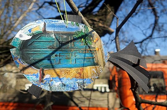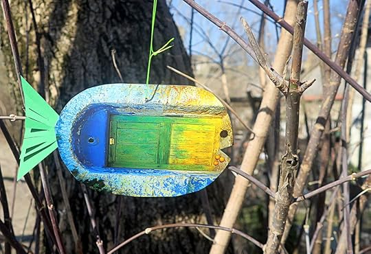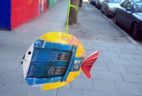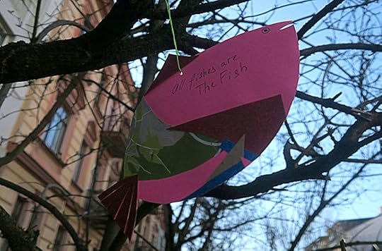 И рыба неизвестного автора, сделанная из зеркала. Висит в арт-пространстве возле Ужупского инкубатора, очень мне понравилась, грех не показать: