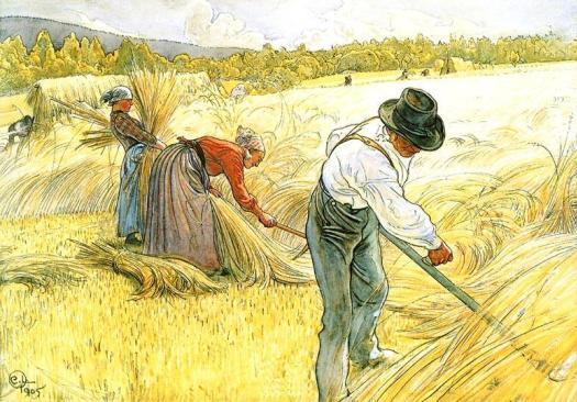 Sometimes I try to get my imagination going by looking at old census records, reading old newspaper stories, or considering fictional characters from 19th century novels. I also spend time looking at paintings from the right time period. This painting by the swedish artist Carl Larsson, (1853-1919, so just about Anna and Sophie’s age) is the kind of thing I mean — it really captures the detail of farming life in the later 1800s. Looking at the clothing of the women working in the fields.