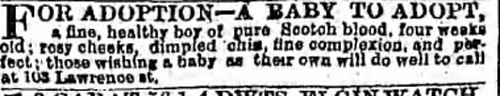 Is Newspapers.com worth the expense, given this unfortunate glitch? For me it is, but then not many people worry about the price of a lamb chop in 1884. Or how infants were offered for adoption:
