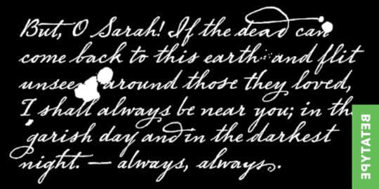 Thus my confession, but please know: I have not bought any of these fonts. Self discipline and financial stability are my watchwords. I will also confess that I stopped at admitting to two font-crushes. There are more. And there are some that cost many, many more times what even Sarah demands for her presence in your digital life.