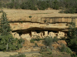 My book begins in Mesa Verde, in Colorado. I slightly fictionalized Mesa Verde and didn't exactly pin point the location because I needed my cliff dwellings to be of a very specific design so someone could be trapped at the topmost cave simply by removing a ladder and Mesa Verde didn't do that for me, from what I could see in pictures. I've attached a picture of Mesa Verde to my email and if you'll look close there could be some caves high above the others, and if I was searching for gold in that place, I'd probably find a way to look in every nook and cranny.