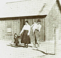 Besides the photograph of my grandmother which I mentioned above, the photographs, such as this one on the left, of pioneer families standing proudly in front of their homesteads inspired me with a sense of the courage and vision they must have had. Surely they were seeing "the desert blossom as a rose" in their minds. Look hard and you'll see a heartbreakingly fragile tree planted beside the house.