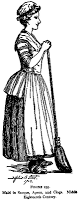 In the U.S., until Butterick began to publish patterns, fashionable clothing that fit properly was the purview of the wealthy. The rest of society either wore makeshift clothing that didn't fit very well or hoped for hand-me-downs from someone higher up the income ladder. Aprons (a straight piece of cloth gathered onto a narrow piece of cloth tied at the waist) or belts often give shape to what was little more than a long, hemmed, sack. In this engraving of a maid in the 1750s, the softness around her neck is probably a square of cloth folded and draped like a scarf. The headgear? A circle (invert a pail, a basket, or a crock and you've got a circle pattern) gathered to fit around the head (measure with a length of twine to see how far to draw it up). I'm no seamstress, but I think I could manage.