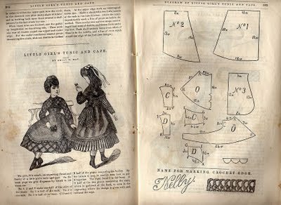 I did, however, find the pattern on the left in an 1869 edition of Peterson's Magazine. How long do you suppose it took a woman to transfer the drawings into usable size ... and how did she make this "one-size-fits-all" approach work for her child? The brief instructions include the admonition that, "by the letters it may be readily seen how to put it together." Oh ... really????