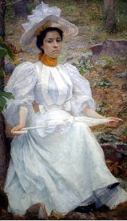 I've talked about the book in earlier posts, and have begun sharing some of the insights into Newport and the sewing process that I discovered while doing the research. I'll share more in future weeks. Here's a woman who looks like Lucia Scarpelli, my seamstress... I love finding portraits of people who match the characters in my head. The fact she'd dressed ala 1895, and is sitting in a place that looks like Newport's Cliff Walk. Zounds, I couldn't have imagined her any better!