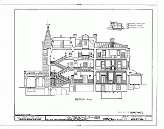 It was first built in 1852 then remodeled and added onto, twenty years later. It was built for William Shepard Wetmore who made his fortune in the China trade. Originally it encompassed 35 acres and had a sea-view. But later, some of its land was sold (and the Breakers built upon it), making this "castle on the sea" landlocked. William and his wife once had a party for 3000 in the house!When William died in 1862, the house passed to his son, George, who eventually became the governor of Rhode Island (1885-1887), and a state senator (1894-1912.) He hired Richard Morris Hunt to transform the house—which Hunt did, starting in 1871. He changed it so much that many people thought the original house had been torn down. Hunt later was the architect on the Vanderbilt's Breakers and Marble House.