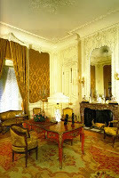 The second room I used was the French parlor—that I called Mrs. Langdon's morning room. It's notable because the wood paneling of the rest of the house is present there too, but Edith Wetmore had it painted white. As a lover of wood and its grain I cringed. But it's a very feminine room in a very masculine house.