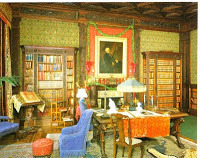 The Library was another room that inspired a scene, a confrontation between a poor girl in want of a book to read, the heir, and a butler. I have a library in my house, with lots of wood and shelves, so I love this type of room.Lastly, the back of the Chateau had a porch facing the sea. I created a scene that had Rowena painting a landscape on the porch, and it was also a place she could go to contemplate the drama in the book. (Note: these wonderful interior photos are from a great book about the mansions of Newport by the Preservation Society of Newport County: I added a room-sized dressing room for Rowena, and stables and outbuildings, as needed. But the spirit of the Chateau lives on in my fictional Porte au Ciel: Gate to Heaven.