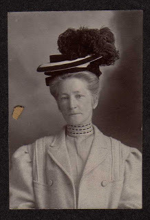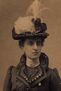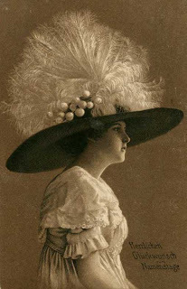 One very helpful resource I discovered while working on Nora was a book called The Female Economy; the Millinery and Dressmaking Trade, 1860-1930. I close with hat history ... and some photos of imaginative head-coverings from my collection of vintage photographs. You'll notice feathers and plumes in abundance. Who knows ... maybe there's a small reptile in there somewhere.