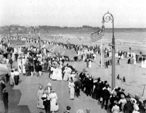 Easton's Beach and the BoardwalkFirst there was Easton's Beach, on the eastern side of Aquidneck Island, south of Easton Pond. This beach actually became too popular, as Newport grew to be not just the summer retreat of the East Coast rich, but a retreat for the working and middle class. The fact the trolleys made it easy for mill workers in nearby Fall River to go to Easton's in their free time, added to its popularity.