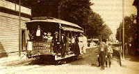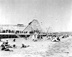 Here's a photo of a trolley in 1889. In Chapter 17 of An Unlikely Suitor, I have a young couple take the trolley to Easton's, where they wade in the ocean. For a nickel you could ride the trolley anywhere. In the early 1900's a roller coaster was added (below.)