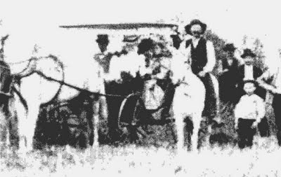 My great-grandparents: Emma in the surrey, and Noach Swenson on the white horse.