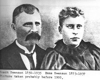 Noach immigrated to Minnesota from Sweden in 1869 at age 19. His sister and her husband were already living near Jordan, Minnesota. Noach worked in the area until he was 21, until he could homestead. A few years later, a group of these immigrants were together socially… and another Swenson (no relation), Muns Swenson and Eva, were at the gathering with a baby in a cradle. People teased Noach about not being married. He said, "I'll marry that one", meaning the baby in the cradle.
