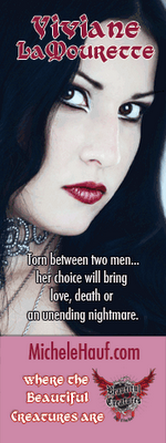 The heroine, Viviane LaMourette, a vampire, has always been Monica Belluci to me. I love this pic of her because she's sexy but there's an innocence on her face that could turn to danger very quickly.
