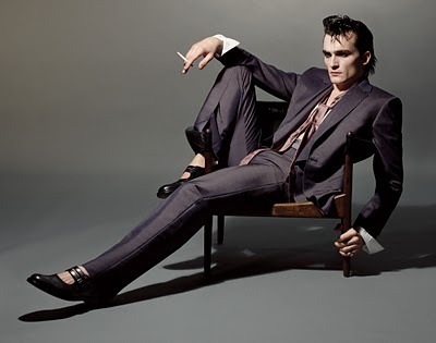 This weekend I'm working up an idea I have for Rogue Angel because I'd love to do another of those. I found this picture of Rupert Friend (he was in Cherie and I think he's Kiera Knightley's guy). He looks very matador-ish in this pic for some reason. Arrogant, entitled, and chillingly deadly. But check the girlie strappy shoes. :-)