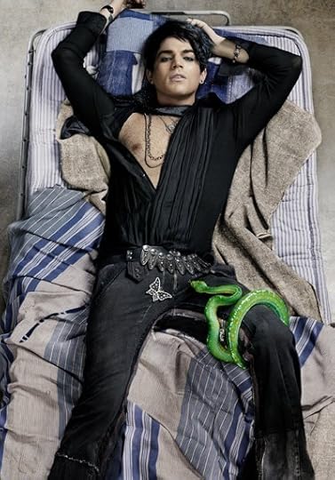 In celebration of having completed the AAs (Author Alterations) for FOREVER VAMPIRE, which is the last step in the editing process before the book is prepared to go to press, I found the perfect pic. Vail, the hero of FV, is tall, dark, wears black and silver, likes black nail polish and cowboy boots, loves Johnny Cash, and happens to have a pet snake named Green Snake. So I give to you a picture that I had never seen until this morning, but how strangely appropriate. And he's even lying on a ratty old bed, which, once you read the book, you'll wonder if I saw this pic before a certain scene in the book (I did not).