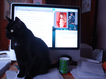 Some days it is a wonder I get things done at all. Maxwell has made it his duty to stake out real estate that effectively blocks my view of the work in progress and also silently screams, "Don't you see me! I'm right here! Play with me! Toss my chewy mouse for me. Don't just sit there all day moving your fingers on that keyboard thingie!"